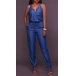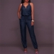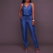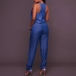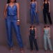 Fashion Sleeveless V-neck High Waist Wide-leg Denim Jumpsuit