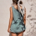 Fashion Sleeveless V-neck Knit Top + Shorts Two-piece Set