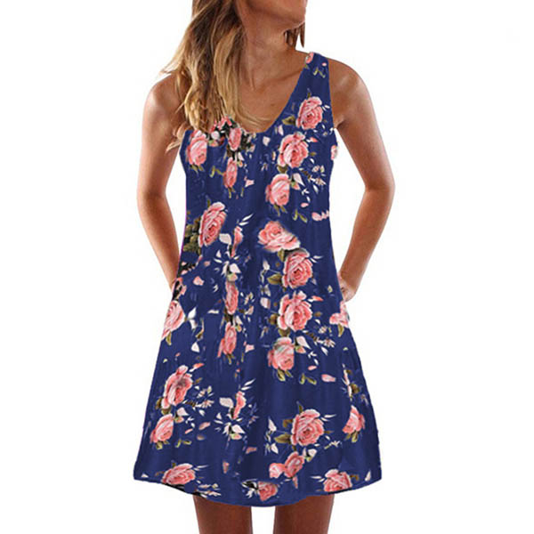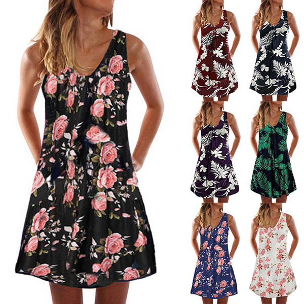 When you wanna step out to greet the sunny days,you can just slip into this dress to have a wonderful time. Its vibrant floral print details make this piece look so eye-catching and stylish. Finished with sleeveless,v-neck and a loose silhouette,this piece can offer you a cozy yet stylish style.
