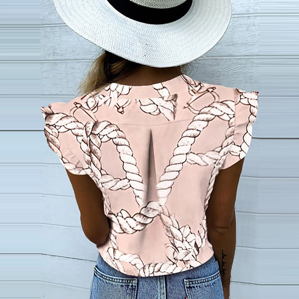 Fashion Sleeveless V-neck Printed Blouse