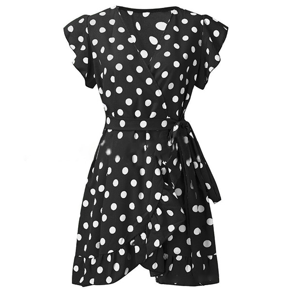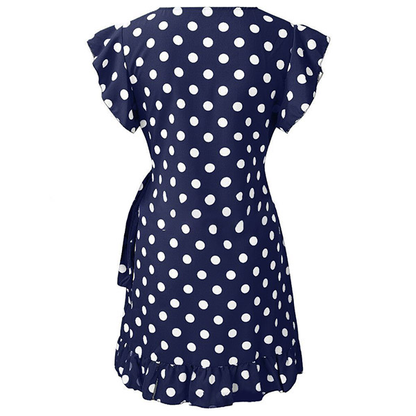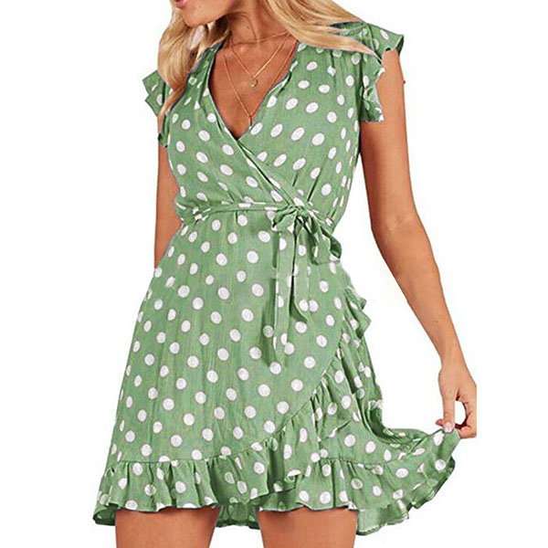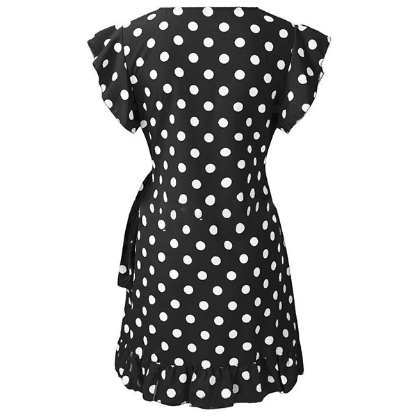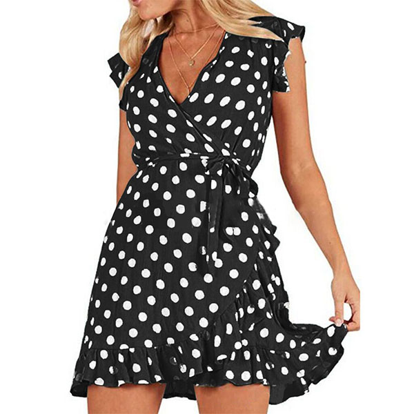 Looking good is never hard for you if you have this dress in your team. The dots printed details can make you look more playful and eye-catching,while the v-neck and ruffle hem design can better exude your sexy vibe and feminine appeal. For your night dating and weekend out,this dress can be your wise choice.