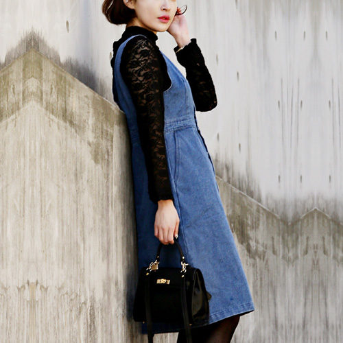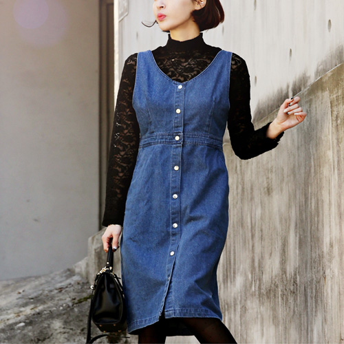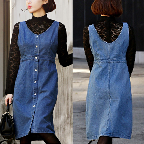 Denim dress is always popular among people. So if you don't have one,then how could you miss this one?