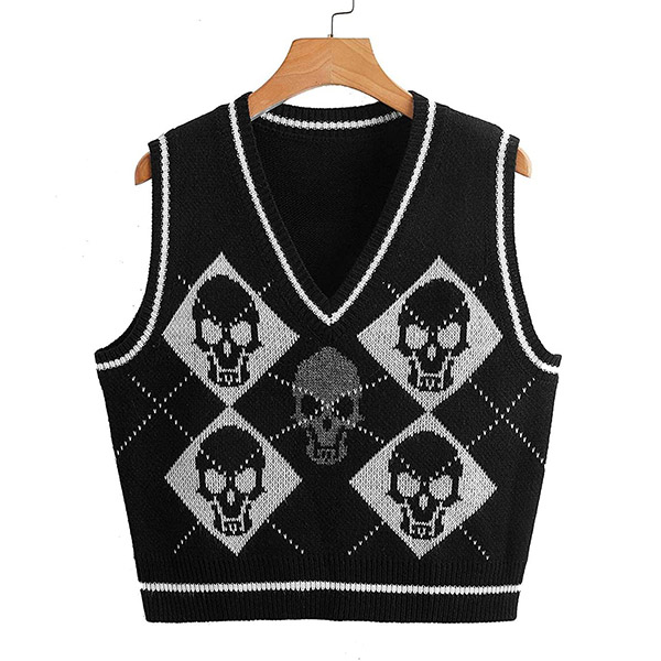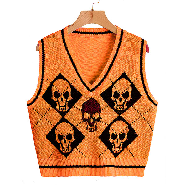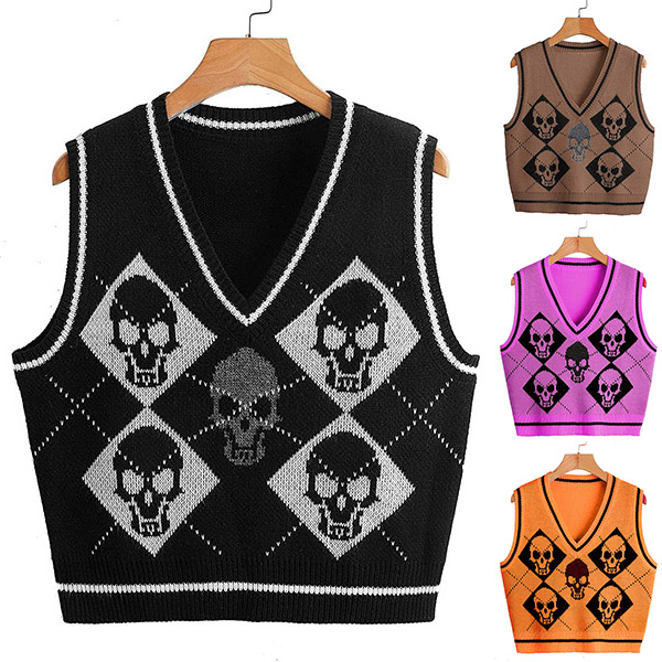 Fashion Sleeveless V-neck Skull Head Pattern Knit Vest