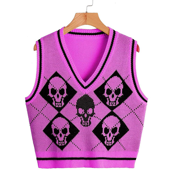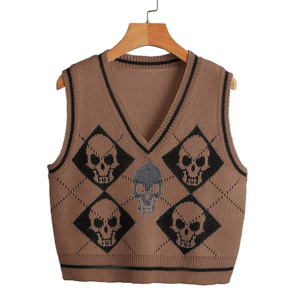 For these neither too cold nor too hot days,this knit vest can be your perfect choice. The skull head pattern design makes it look so chic and unique. Finished with sleeveless,v-neck and a loose silhouette,this vest can keep you warm yet stylish. It is perfect for matching with your shirts.