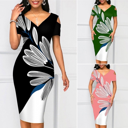 Fashion Sleeveless V-neck Slim Fit Printed Dress