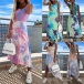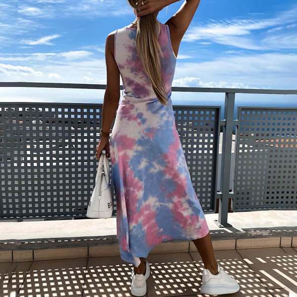 Fashion Sleeveless V-neck Slit Hem Tie-dye Printed Dress