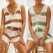 Fashion Sleeveless V-neck Striped Knit Top + Shorts Two-piece Set
