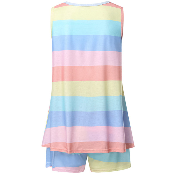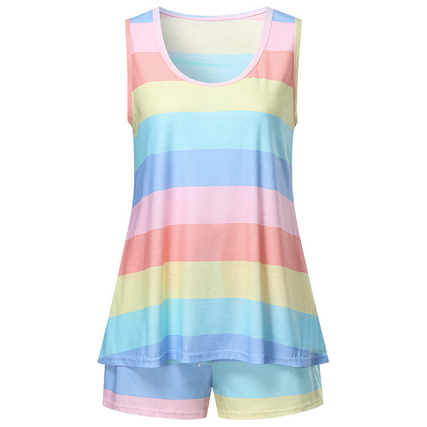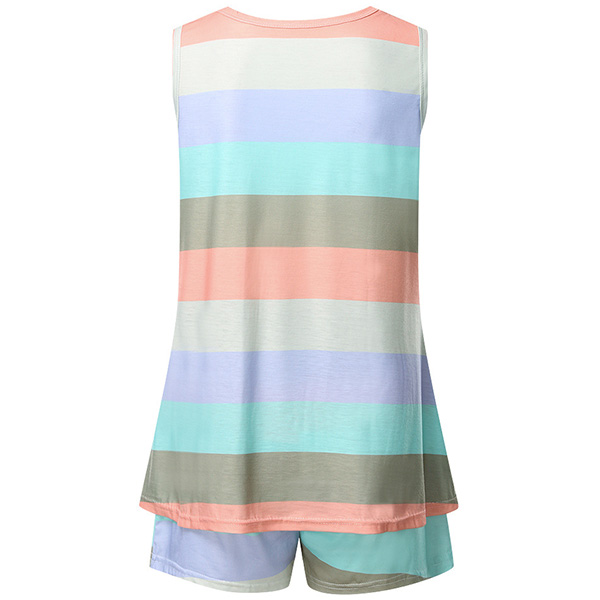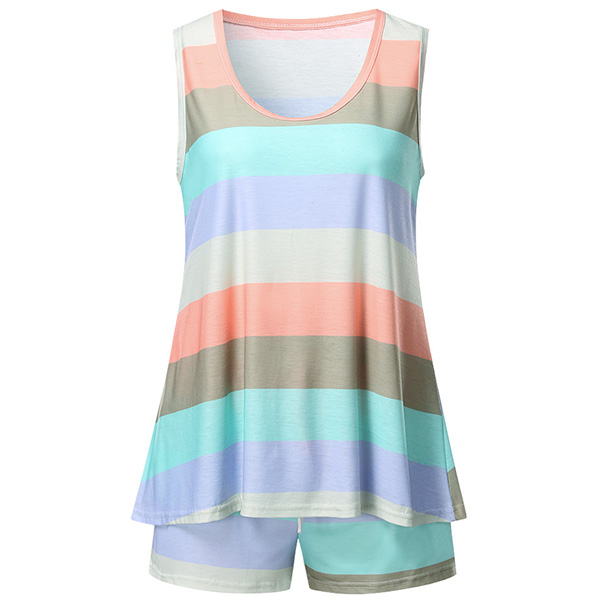 On your lazy days when you don't wanna do your daily matching,then this two-piece set can be a perfect solution. The colorful stripe element design makes it look so stylish and attractive. Including a sleeveless v-neck top and a shorts,this two-piece set knows how to give you a cozy yet stylish style.