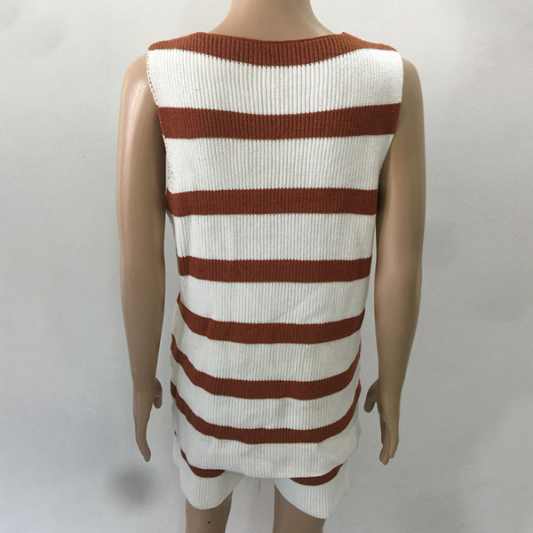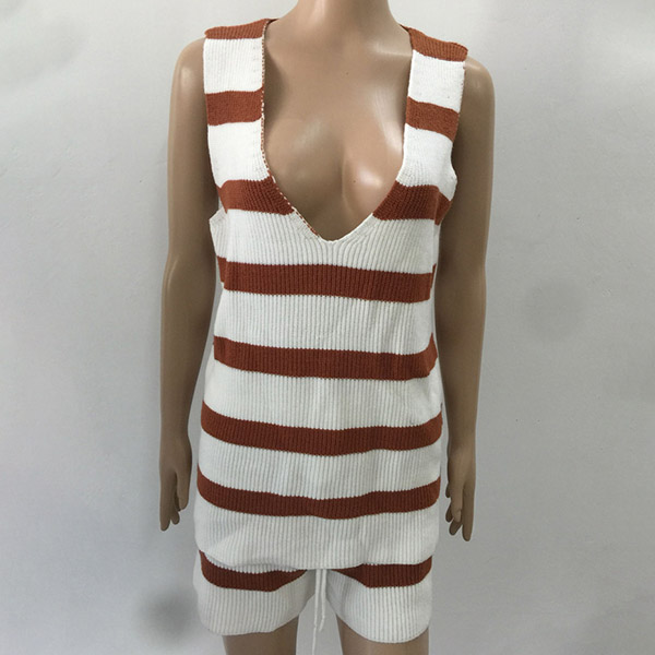 Fashion Sleeveless V-neck Striped Top + Shorts Two-piece Set