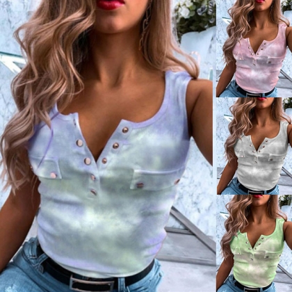 Fashion Sleeveless V-neck Tie-dye Printed Tank Top