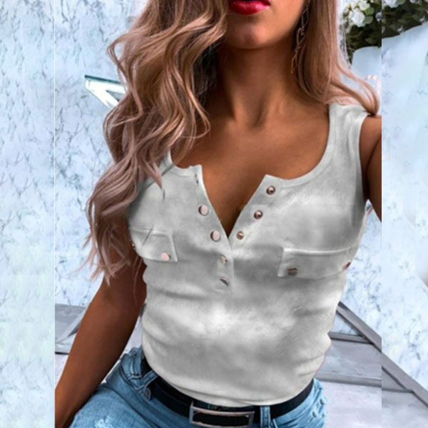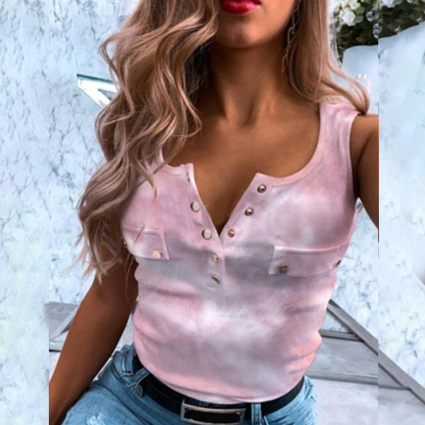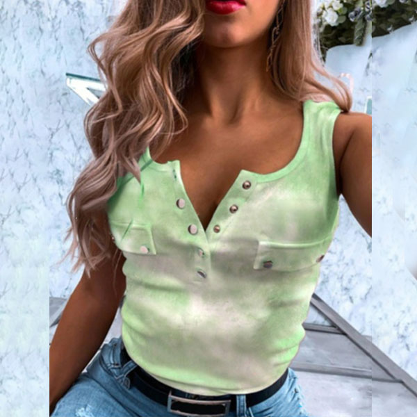 As one of the summer essentials,this cozy yet stylish tank top is worth to have a place in your wardrobe. The tie-dye printed details make this piece look so chic and unique. Finished with sleeveless,v-neck and a clean silhouette,this piece can offer you different fashion styles by teaming with different style bottoms.