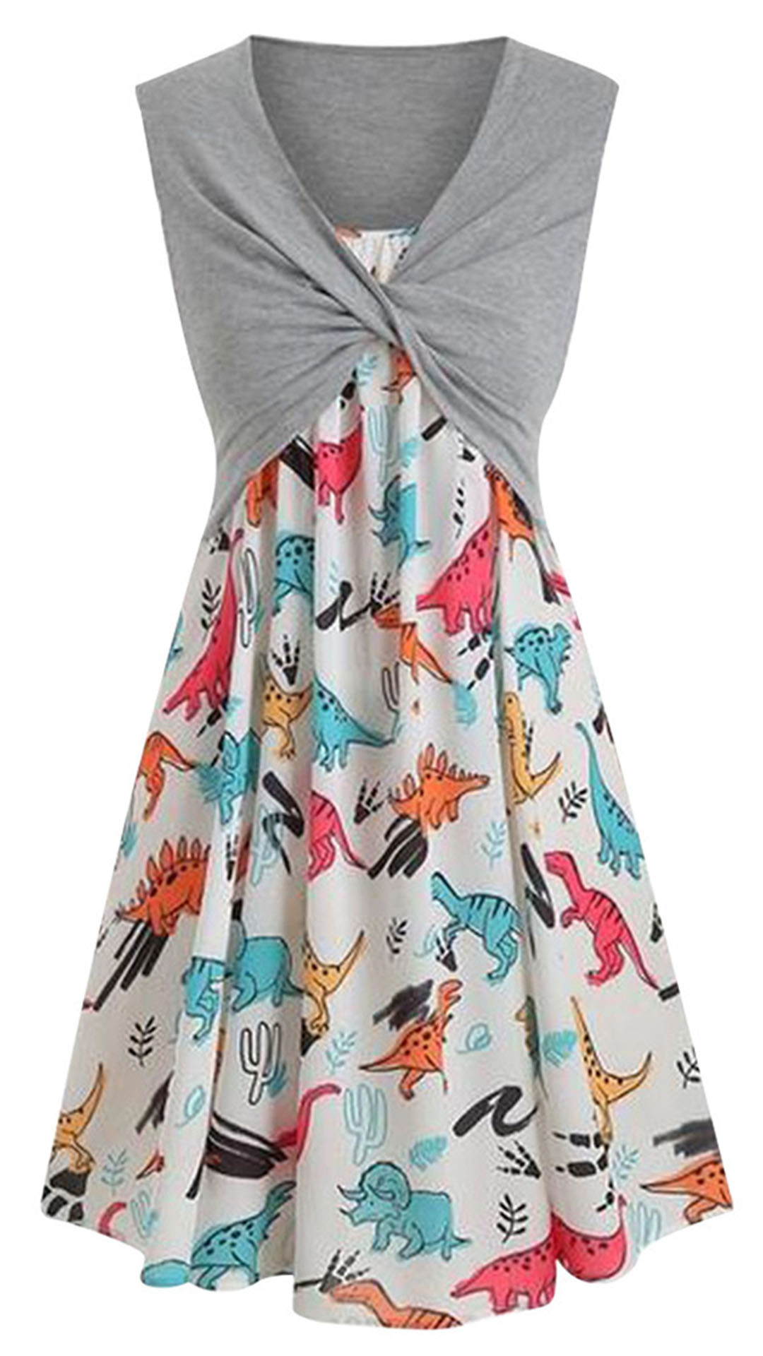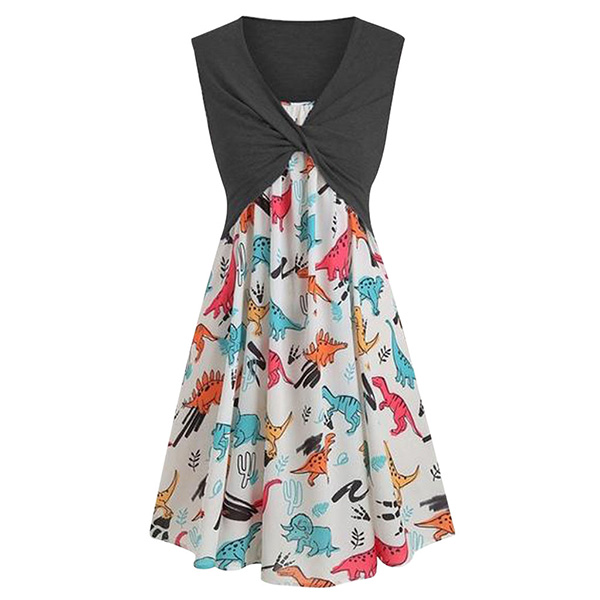 You have no need to worry about what to wear for these summer days if you have this two piece set in your team. Including a sleeveless v-neck twisted crop top and a sling printed dress,this two-piece set is sure to know how to make you look sassy and flirty. You can just update your style and boost your charm with this two-piece set.