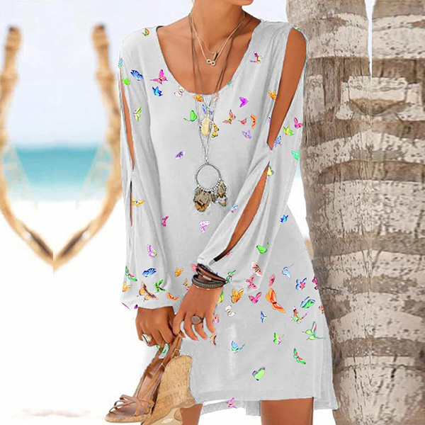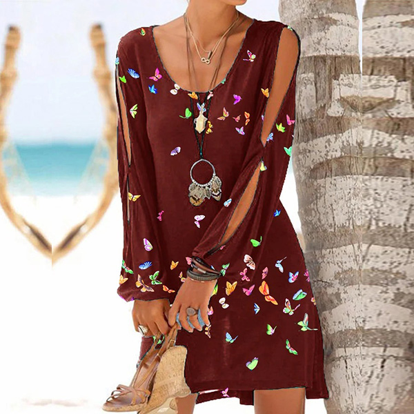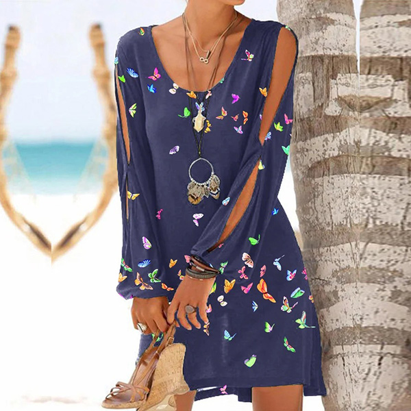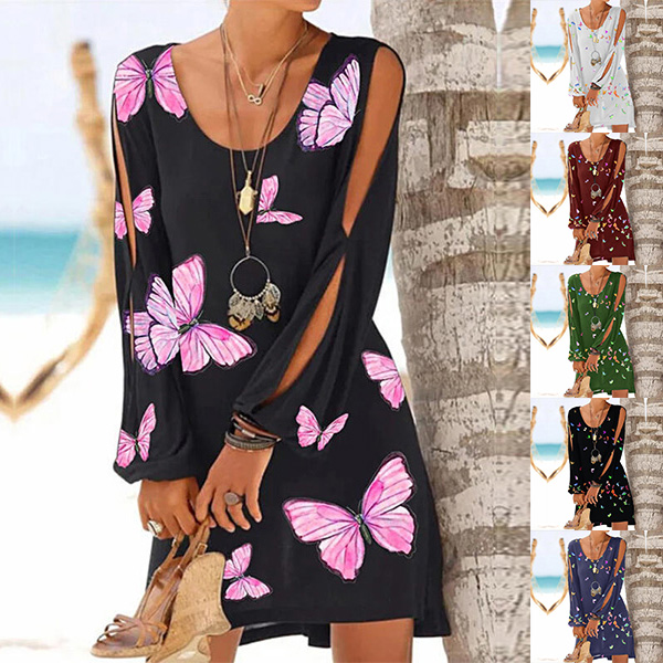 For your weekend dating with your friends,you can trust in this dress to exude your style and personality. The sunflower printed pattern and slit long sleeve design make this piece look more attractive. And its soft,breathable fabric can ensure you a comfortable day. So why not invite it to your wardrobe ensemble?