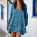 Fashion Slit Long Sleeve V-neck Loose Printed Dress
