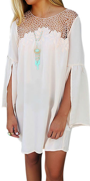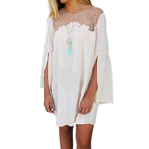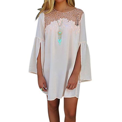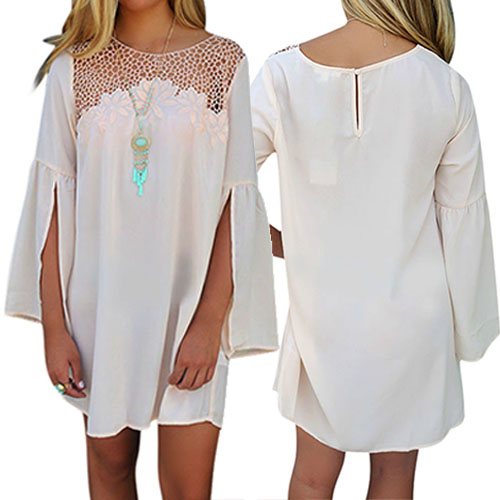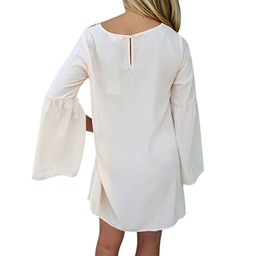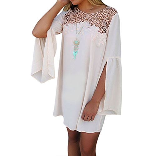 stylish in this shift dress. Its trumpet-sleeve with slit design makes it look more sexy,and round