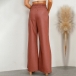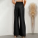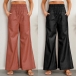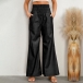 Fashion Smocked High-rise Wide-leg Artificial Leather PU Pants