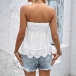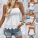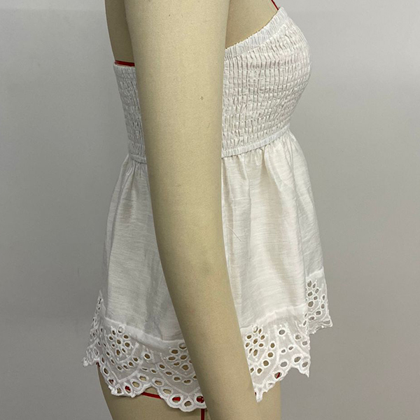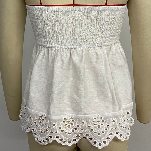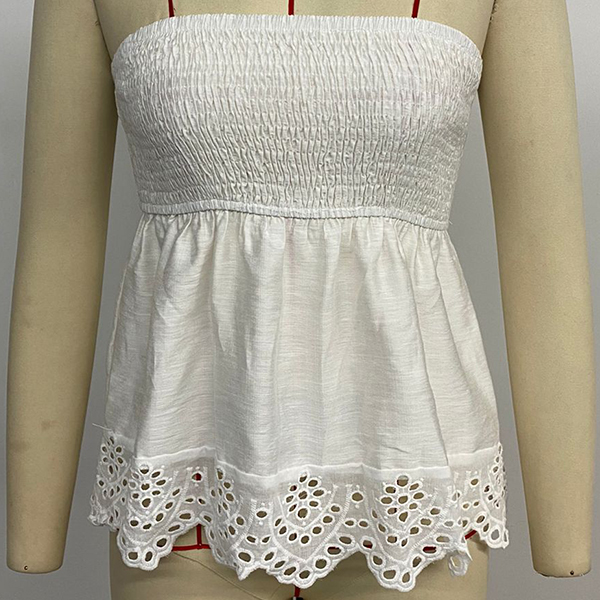Fashion Smocked Strapless Hollow Out Hemline Shirt