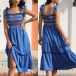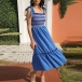 Fashion Smocked Tiered Contrast Color Self-tie Midi Dress