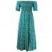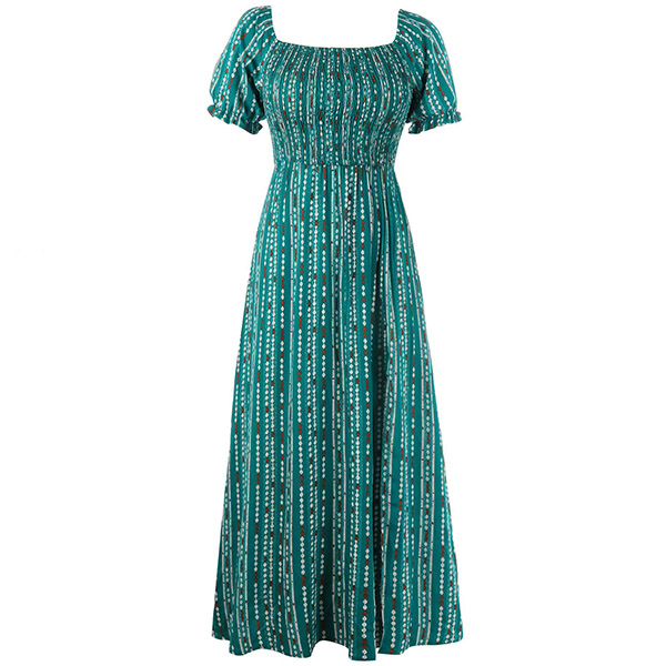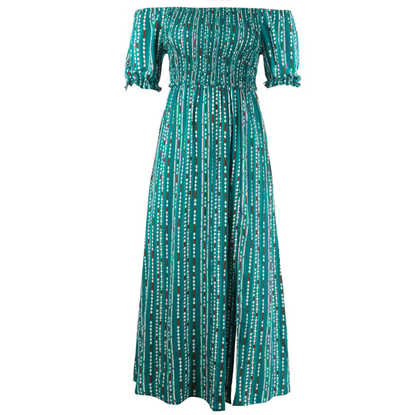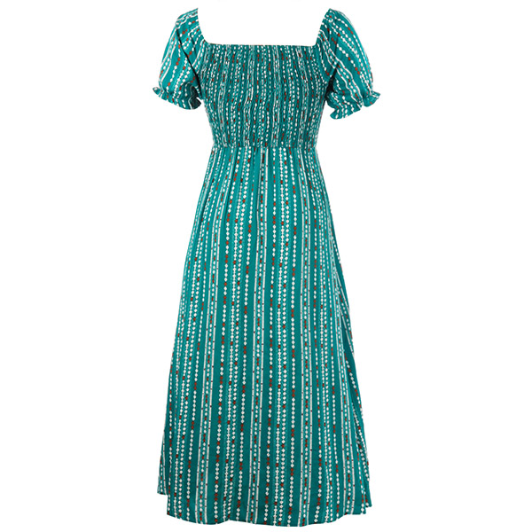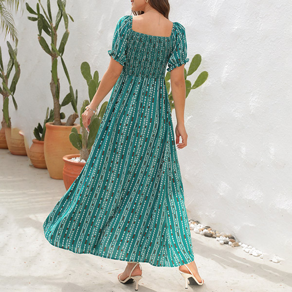 Fashion Smocked Vertical Stripe Short Sleeve Slit Midi Dress