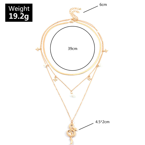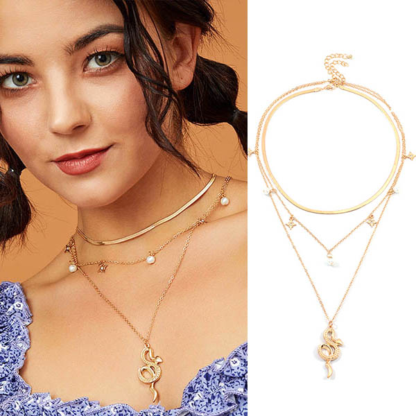 When wearing some off-shoulder,strapless or deep v-neck outfits,you can add this necklace to achieve for a more beautiful look. Three-layer style,decorated with snake pendant,chic,unique and stylish. Add one to your fashion accessories collections.