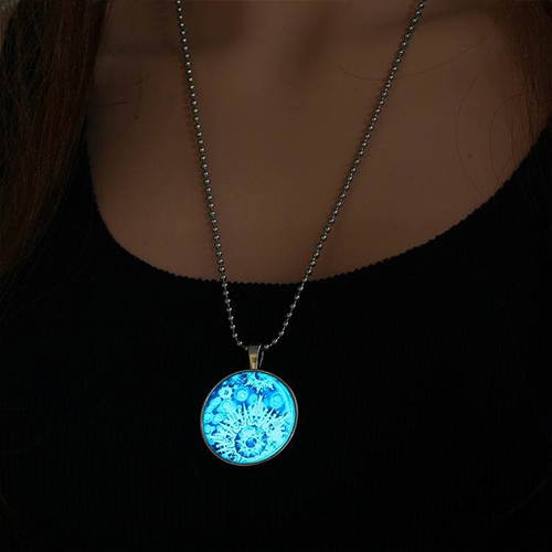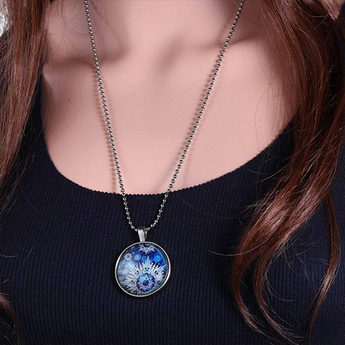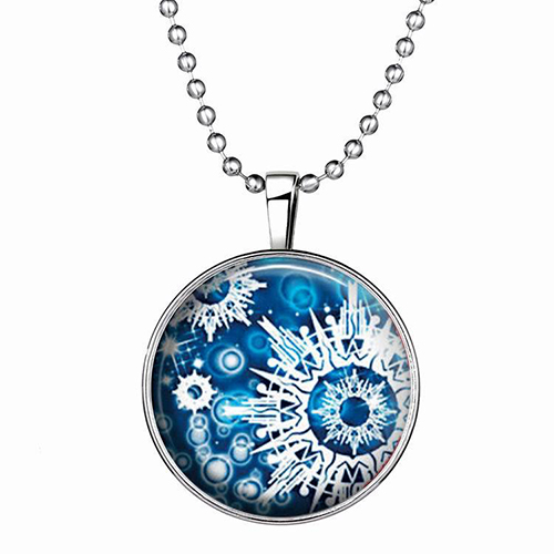 Fashion Snowflake Pattern Time Gem Pendant Necklace