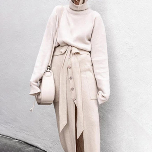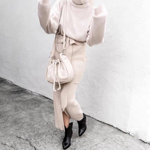Fashion Solid Colo Long Sleeve Turtleneck Top + Skit Hem Skirt Two-piece Set