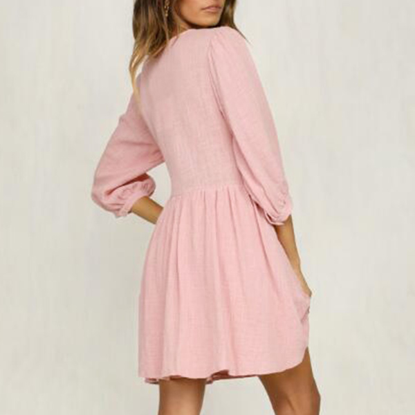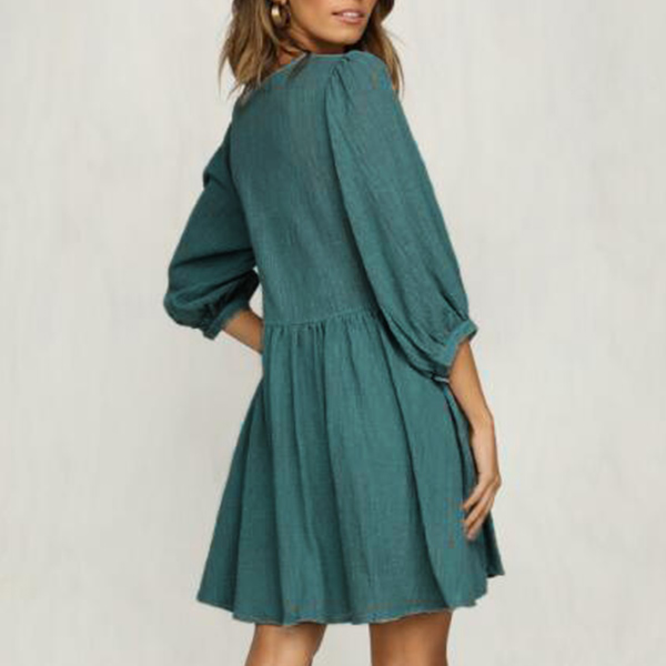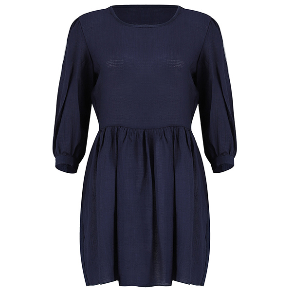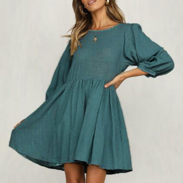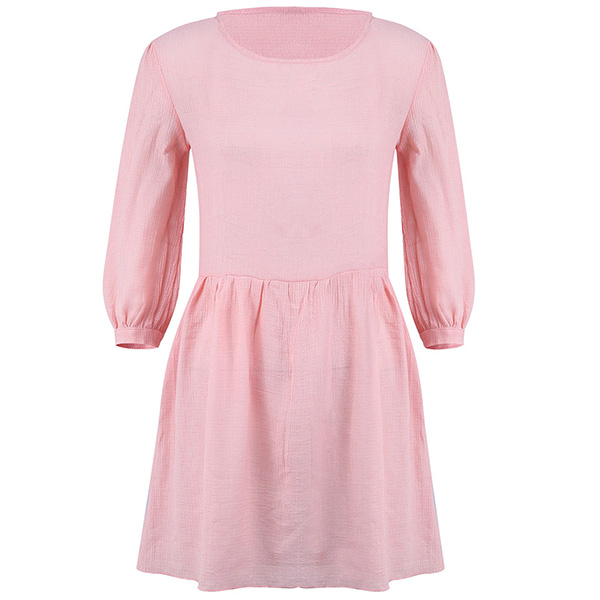 Fashion Solid Coloe 3/4 Sleeve Round Neck Dress