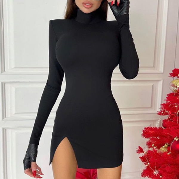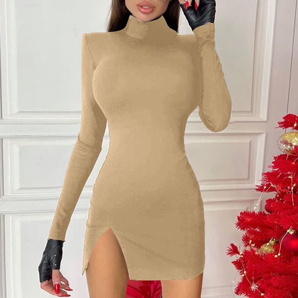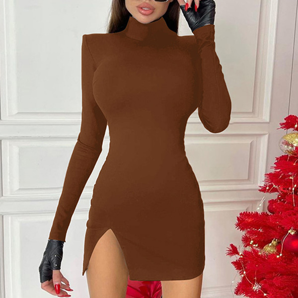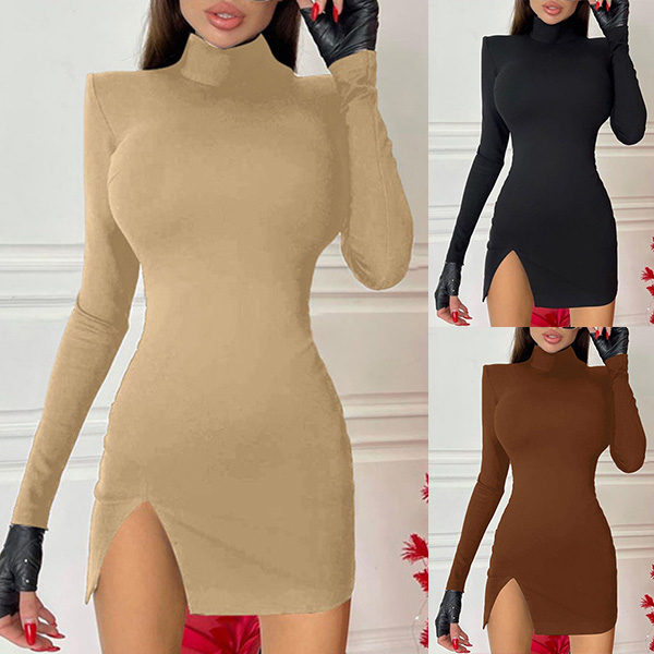 Effortlessly channel your inner siren in this stunning dress. It features solid color style,with 3/4 sleeve, round neck,irregular hem and a fit silhouette design,this dress does all the work in making you look like a sultry standout. Paired with your sexy heels. Of course,adding a stunning necklace would be more perfect.