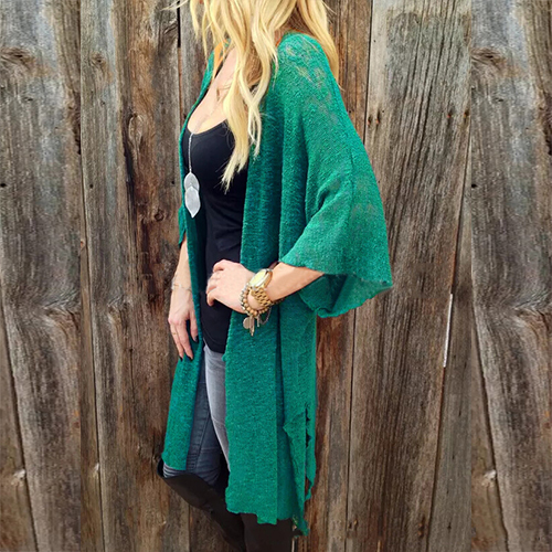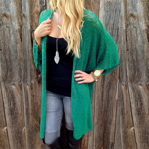 3/4 sleeve and an open-front. And its cozy fabric can keep you comfortable all day.