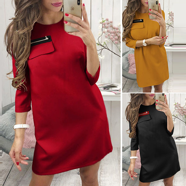 with 3/4 sleeve,round neck and a fit silhouette,this dress is sure to give you a cozy yet stylish style.