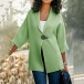 When the autumn days hit,this cardigan coat would be your new darling. Solid color style,the 3/4 sleeve and unique button design make this piece look not so simple and monotonous. When you feel a little cold around your office or on the breezy nights,you can just slip into this little piece to stay warm and stylish.