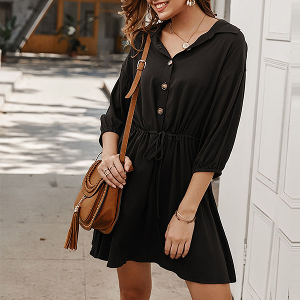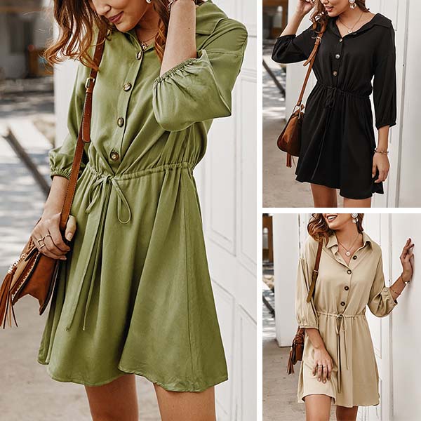 No matter for your busy workdays or weekend out,this versatile dress can give you a perfect transition. Solid color style,finished with 3/4 sleeve,POLO collar and front-button details,this dress knows how to give you a cozy yet stylish style. You can trust in this dress to give your style an instant boost!