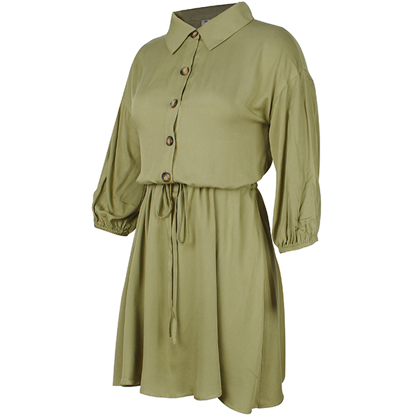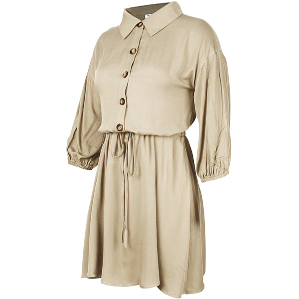 Fashion Solid Color 3/4 Sleeve POLO Collar Front-button Dress