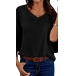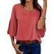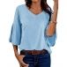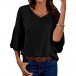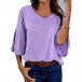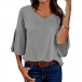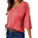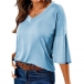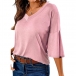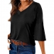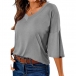 Fashion Solid Color 3/4 Sleeve V-neck Loose T-shirt