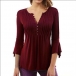 If you're in search for a piece that can easily upgrade your style, look no further than this t-shirt! Crafted in a solid color,the 3/4 trumpet sleeve design breaks the simple and dull design style. Meanwhile,its soft and breathable fabric can promise you a comfortable day. Like it? Then invite it to your wardrobe!