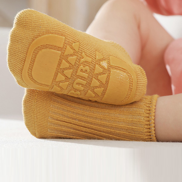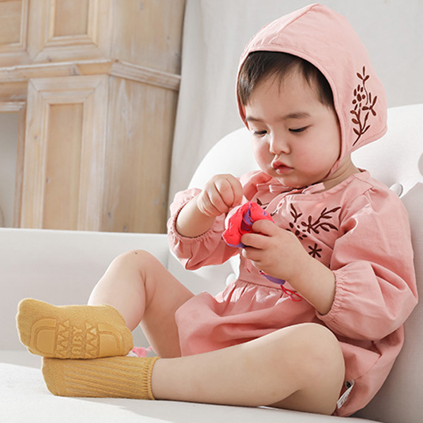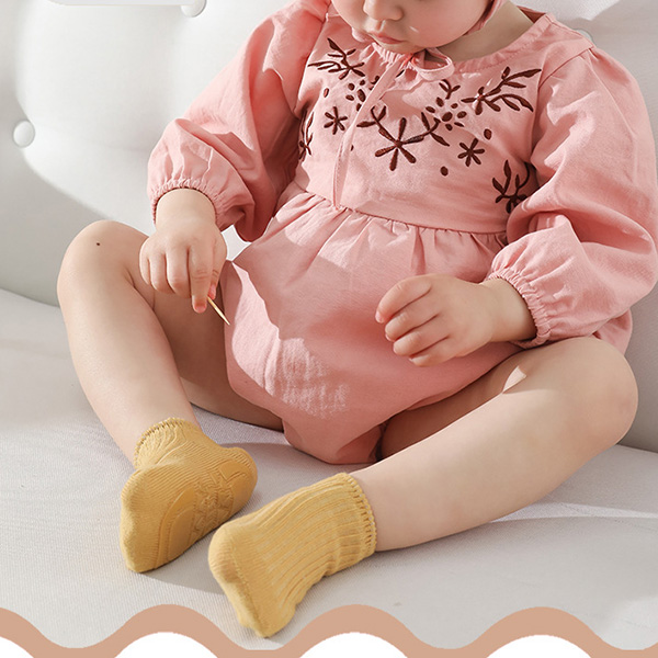 For your baby,this pair of floor socks would be a good choice. Solid color tone design makes it look simple. The anti-slip design can keep your baby's safety when she/he is walking an home. And the soft,breathable and stretch fabric can keep the comfy. So why not buy one pair for your baby?