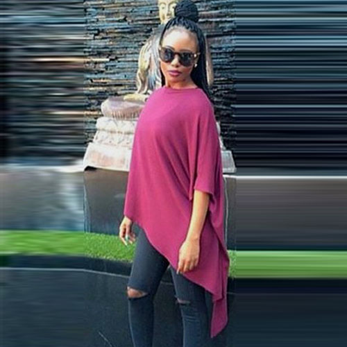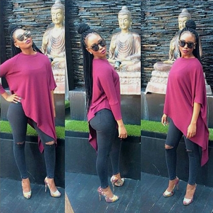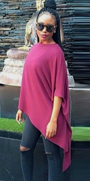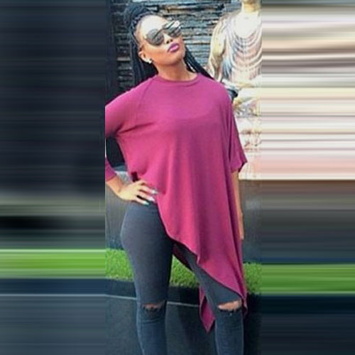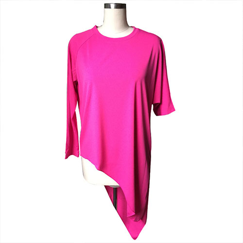 Solid color style,with a round neck,asymmetric bat sleeve and asymmetric hem design.