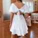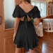 Fashion Solid Color Backless Back-tie Bowknot Backless Tiered Dress