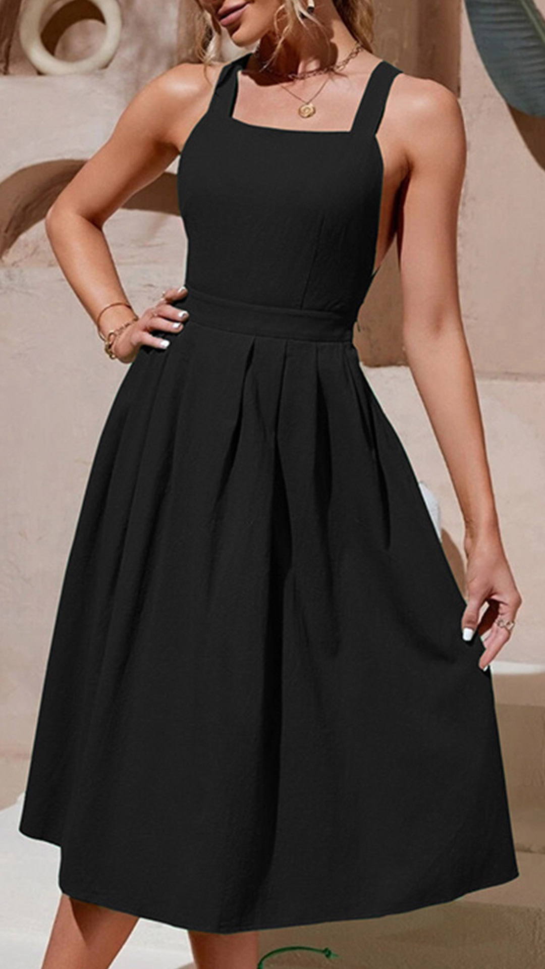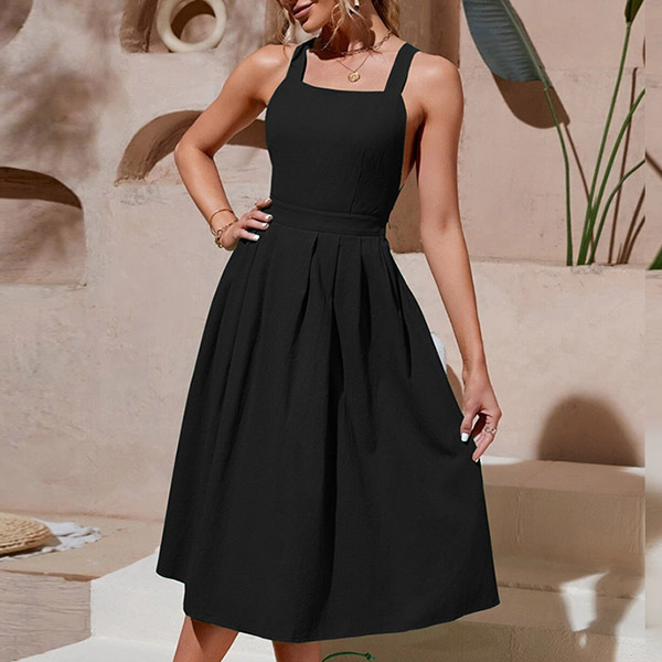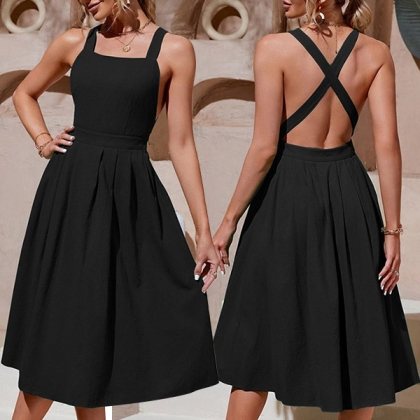 Fashion Solid Color Backless Cross-criss Fit & Flared Slip Dress