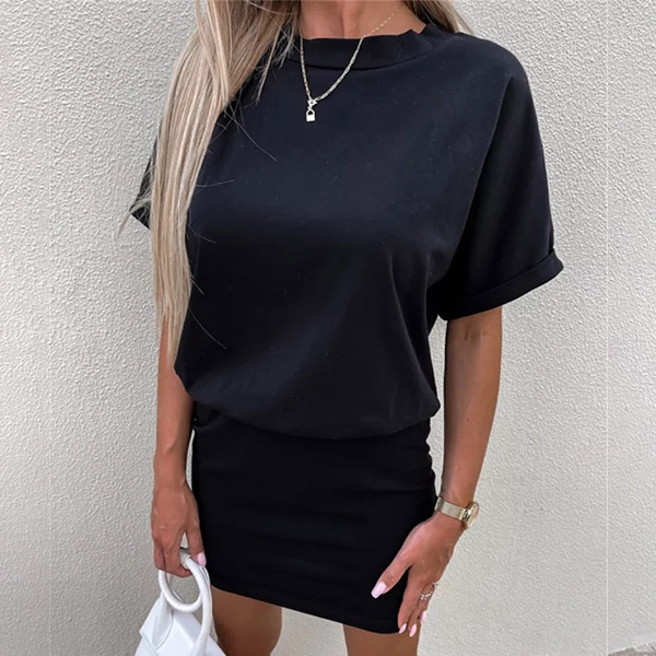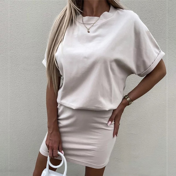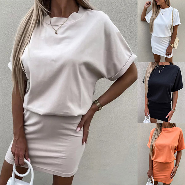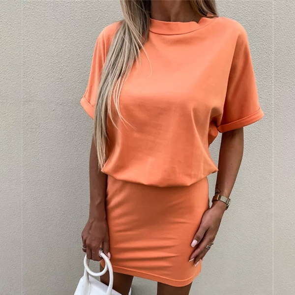 Boasts a solid color , the round neck unique batwing short sleeve design can easily enhance its entire charm, while the fit silhouette designwill showcase your slender figure. This little stunner could be your new basic dress.