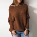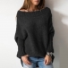 Fashion Solid Color Boat Neck Dolman Sleeve Loose Knit Sweater