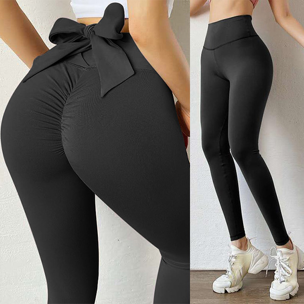 Leggings Extensibles à Taille Haute à Nœud Papillon de Couleur Unie à la Mode