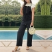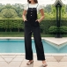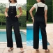 Fashion Solid Color Button Drawstring Waist Straight Cut Jumpsuit
