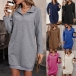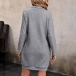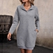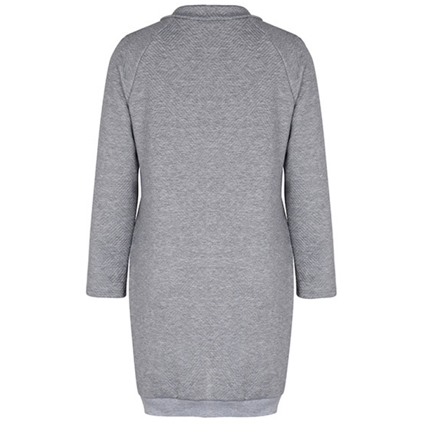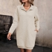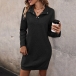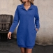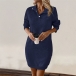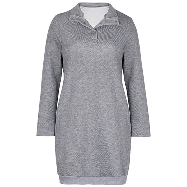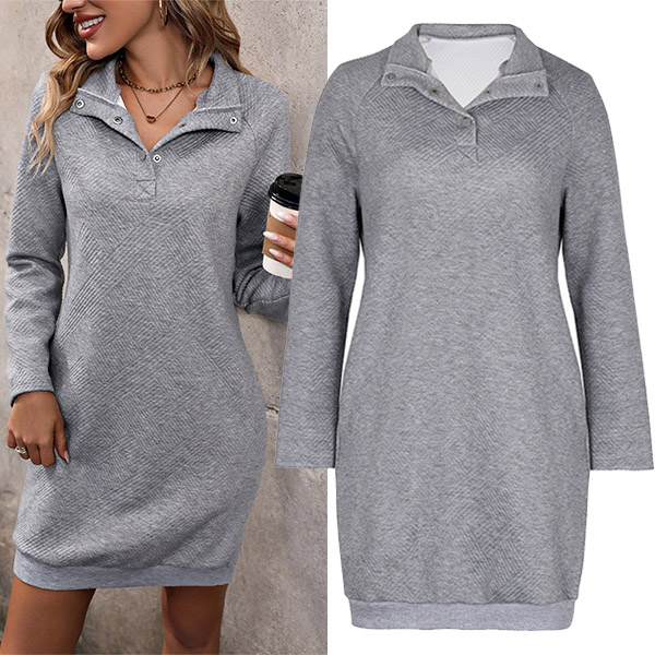 Fashion Solid Color Button V-neck Long Sleeve Sweatshirt Dress