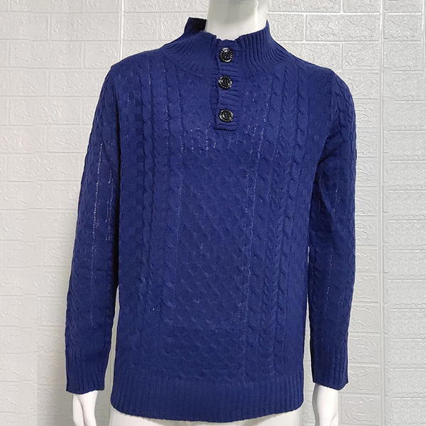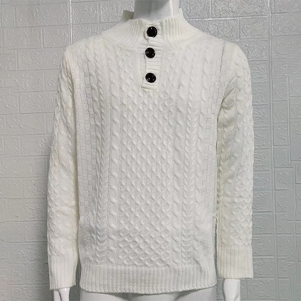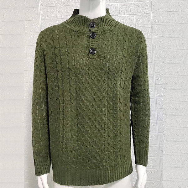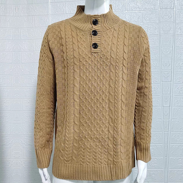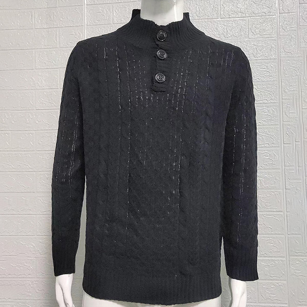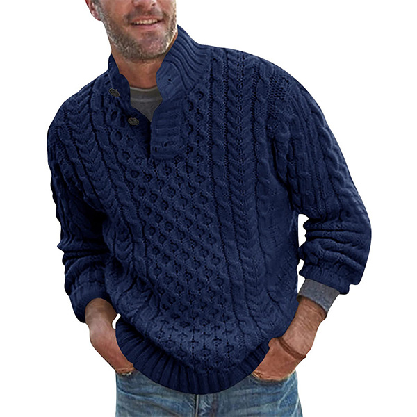 Fashion Solid Color Buttoned Mock Neck Long Sleeve Knitted Sweater for Men