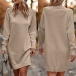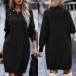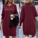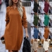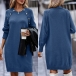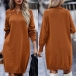Fashion Solid Color Buttoned Round Neck Long Sleeve Knitted Sweater Dress