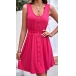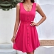 Fashion Solid Color Buttoned Round Neck Sleeveless Mini Dress