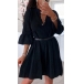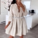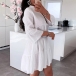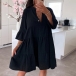Fashion Solid Color Buttoned V-neck Elbow Sleeve Tiered Dress
