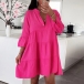 This fashionable and stylish dress is perfect for any special occasion! It is in solid color design, buttoned V-neck, elbow-length sleeves, and a tiered skirt for a flattering and feminine look. Multi-color is avaible.