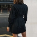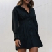 Fashion Solid Color Buttoned V-neck Long Sleeve Blouse Dress
